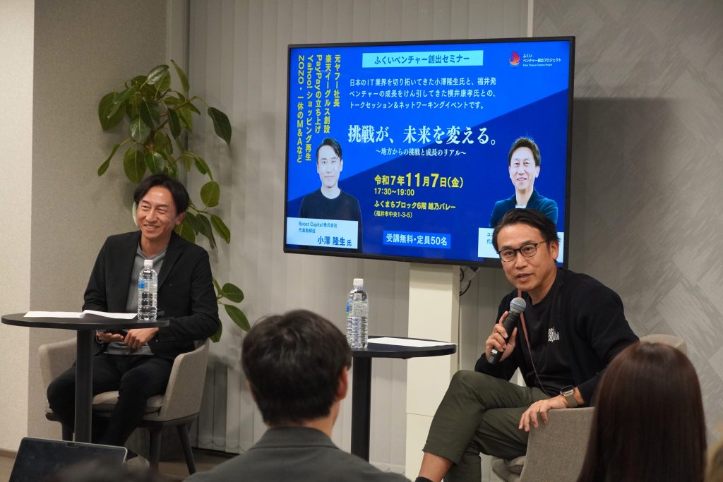 ふくい産業支援センターでは、2025年11月7日に、元ヤフー社長・楽天イーグルス創設・PayPayの立ち上げ・Yahoo! ショッピング再生・ZOZO・一休のM&Aなど、日本のIT業界を切り拓いてきた小澤隆生氏と、福井発ベンチャーの成長をけん引してきた横井康孝氏との、トークセッションをリアル開催しました。