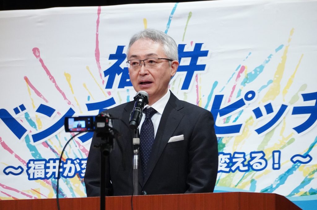 最後に福井ベンチャーピッチのメンターを務めていただいている、横井康孝氏(ユニフォームネクスト株式会社 代表取締役)から総括のコメントをいただき、杉本達治氏(福井県知事)から応援メッセージをいただきました。